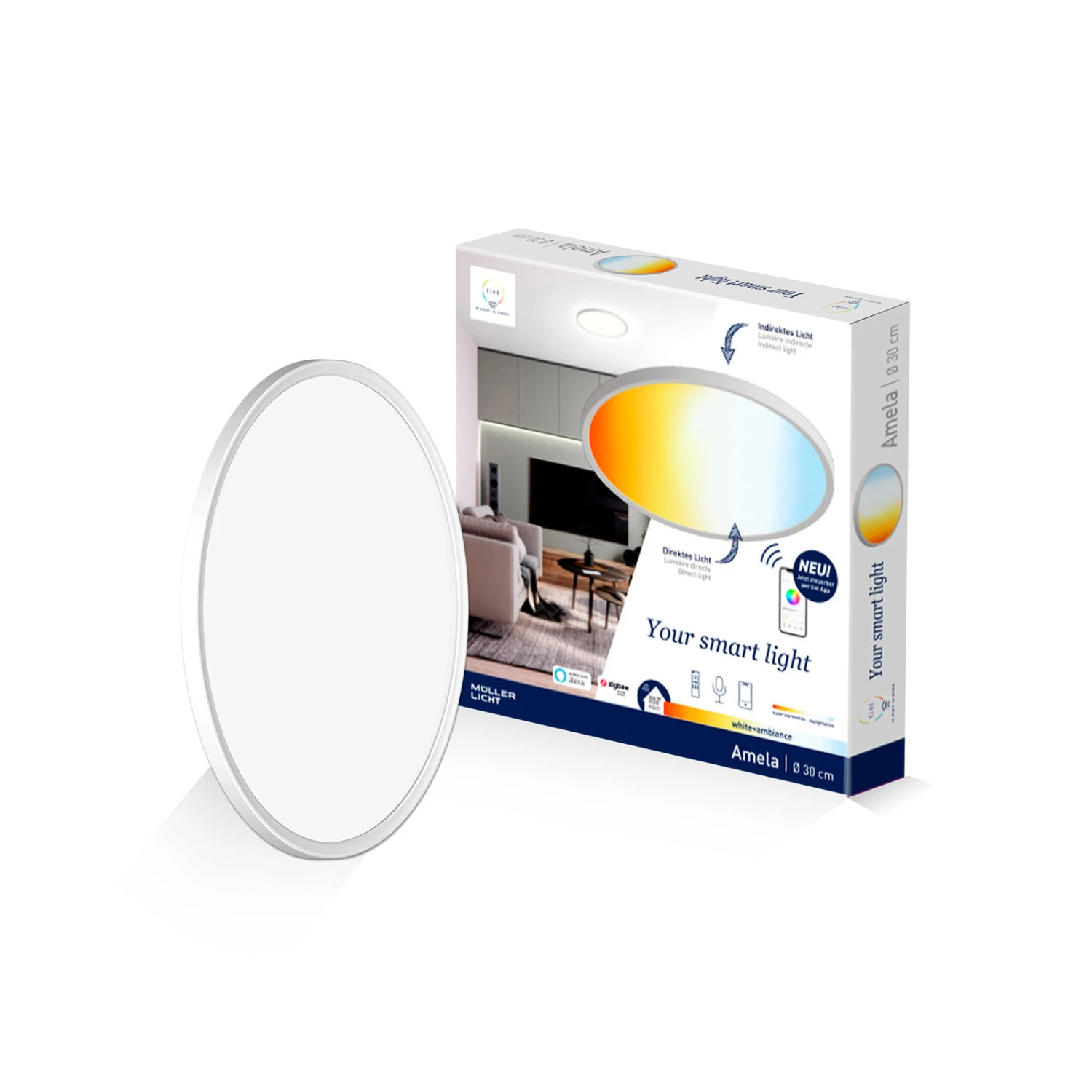 Smart steuerbare LED-Deckenleuchte Amela mit CCT- und Dimmfunktion