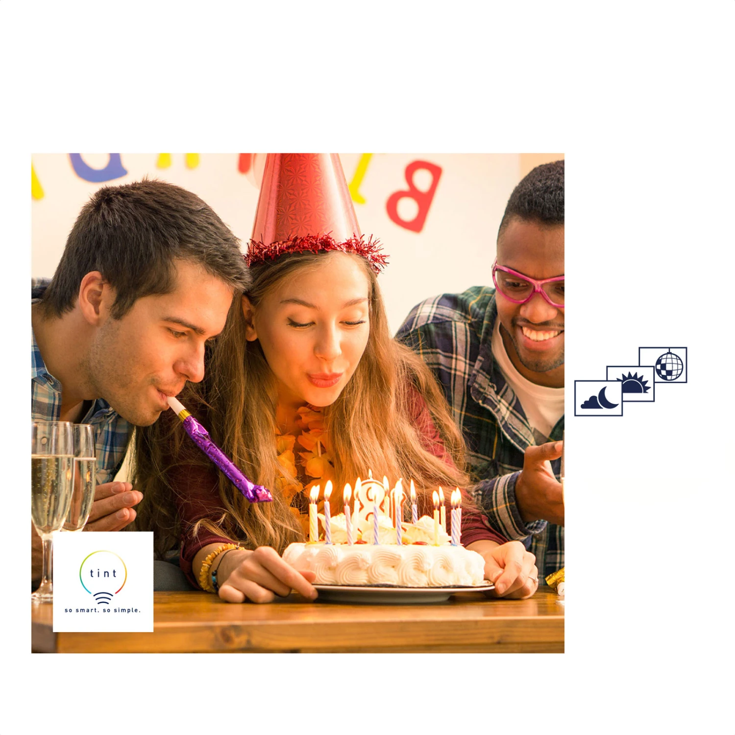 – steuerbar über eine passende tint Fernbedienung (nicht enthalten)