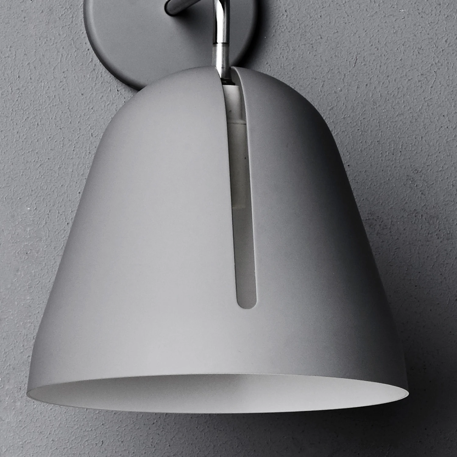 Die kleine Wandleuchte Tilt Wall überzeugt mit ihrem schlichten Design und der beeindruckenden Funktionalität. Mit einer runden Halterung an der Wand angebracht, befindet sich der aus lackiertem Aluminium hergestellte Lampenschirm an einer Halterung, an der entlang er sich drehen und neigen lässt. Möglich macht dies der längliche Schlitz, der sich am Lampenschirm befindet. Über diese Öffnung kann der Schirm wie eine Schale um die Lichtquelle herum bewegt werden. Ob das Licht dabei in den Raum hinein oder auf ein zu beleuchtendes Objekt gelenkt wird, das Verstellen des Schirms funktionert hierbei mühelos und intuitiv. Das Ein- und Ausschalten der Wandleuchte Tilt Wall erfolgt über einen kleinen Schalter, der an der Wandhalterung angebracht ist.
