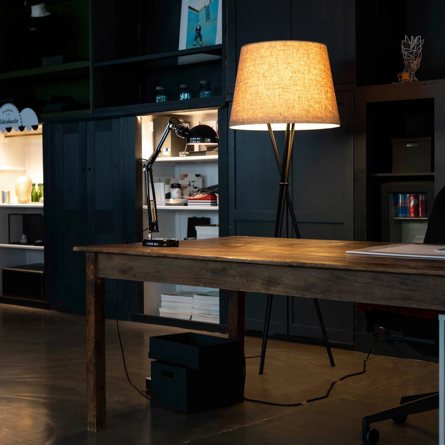 Klassische Dreibein-Stehleuchte Hailey mit integriertem Luftreiniger Ozonos AC-1