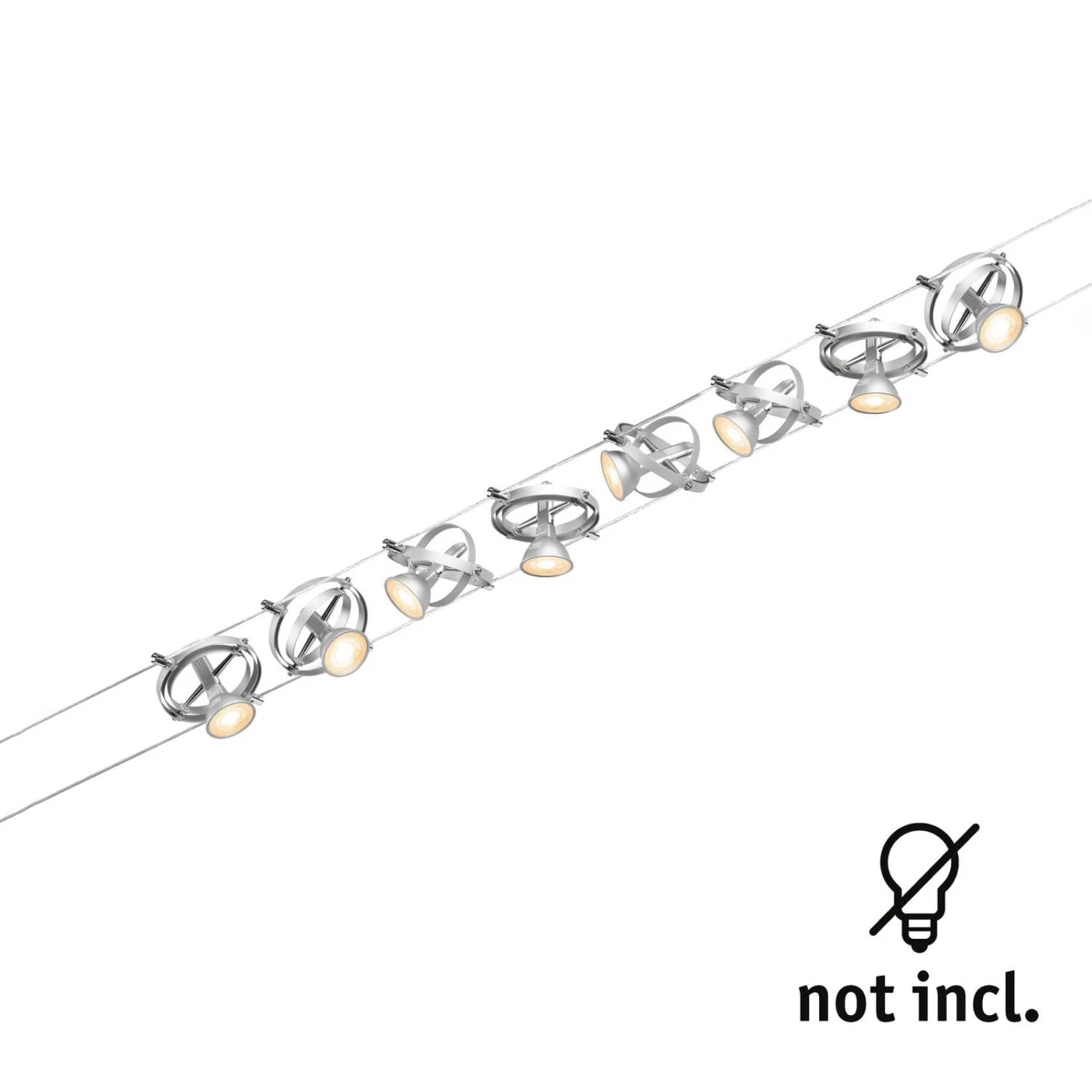 Seilsystem Cardan – achtflammiges Komplettset aus Seil, Trafo und Leuchten