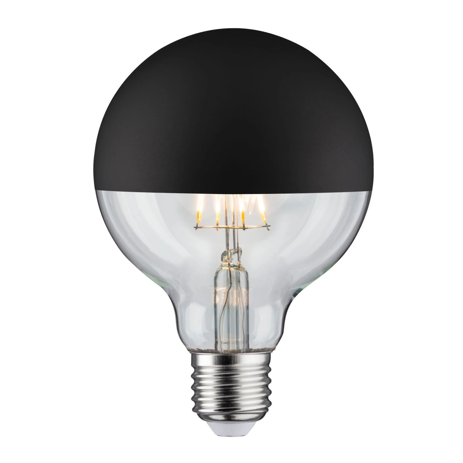In allen Leuchten, in denen der direkte Blick auf das Leuchtmittel gegeben ist, bietet sich diese LED-Globelampe mit verspiegeltem Kopf an, um blendfreie Beleuchtung zu erzielen.