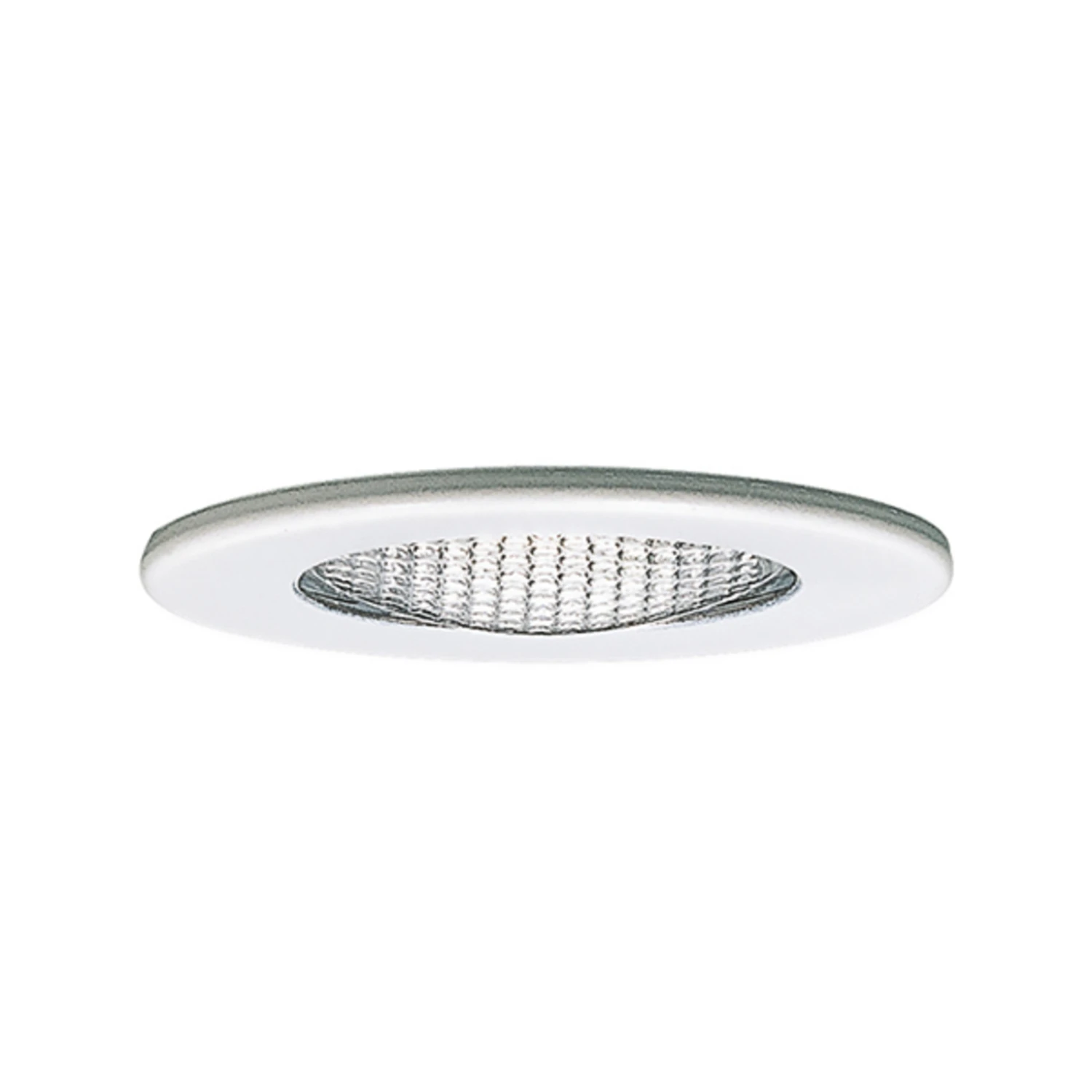 Die einfache Leuchte in runder Form verfügt über einen weiß lackierten Ring. Dabei besteht die Leuchte aber nicht allein aus einem einfachen Metall, sondern besitzt einen Glaskörper mit einer gitterartigen Oberflächenstruktur. Diese Struktur kann das Licht dezent brechen und streuen. Hierdurch erscheint die Beleuchtung nicht zu grell, sondern wird leicht gedämpft. Das helle Licht erhellt hierbei einen weit gefassten Bereich und strahlt nicht allein nach unten weg. Die Möbeleinbauleuchte fügt sich in vielfältige Wohnbereiche harmonisch ein.