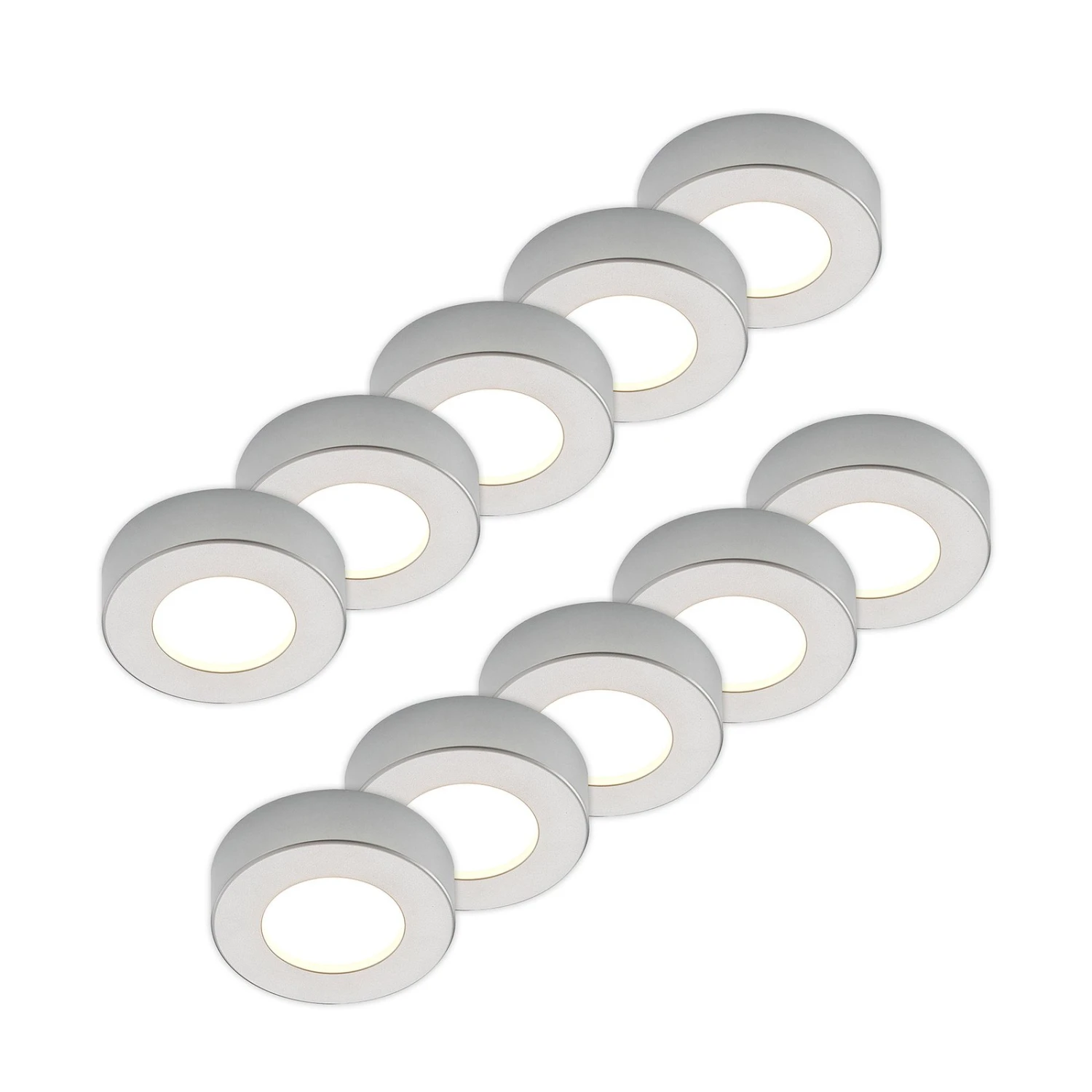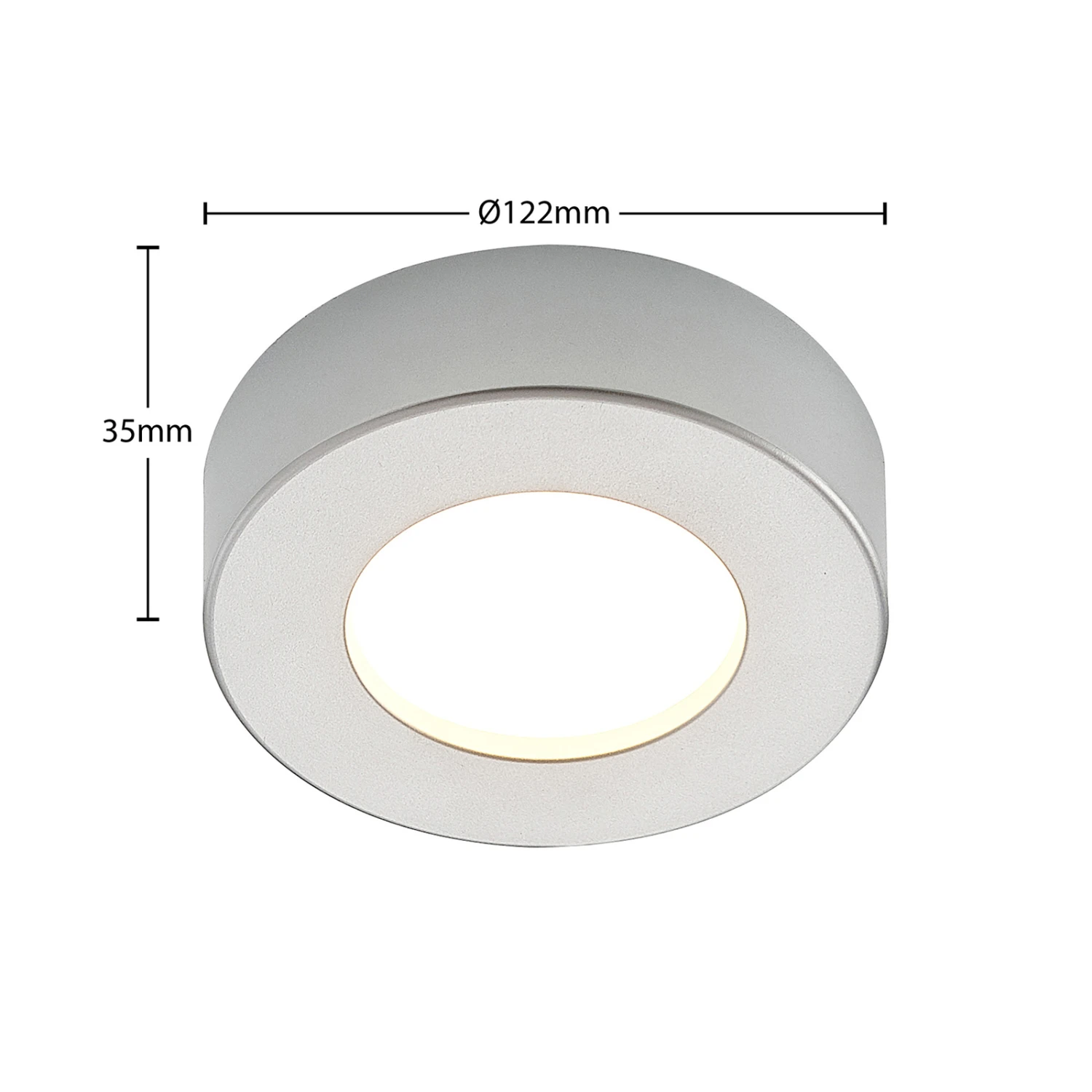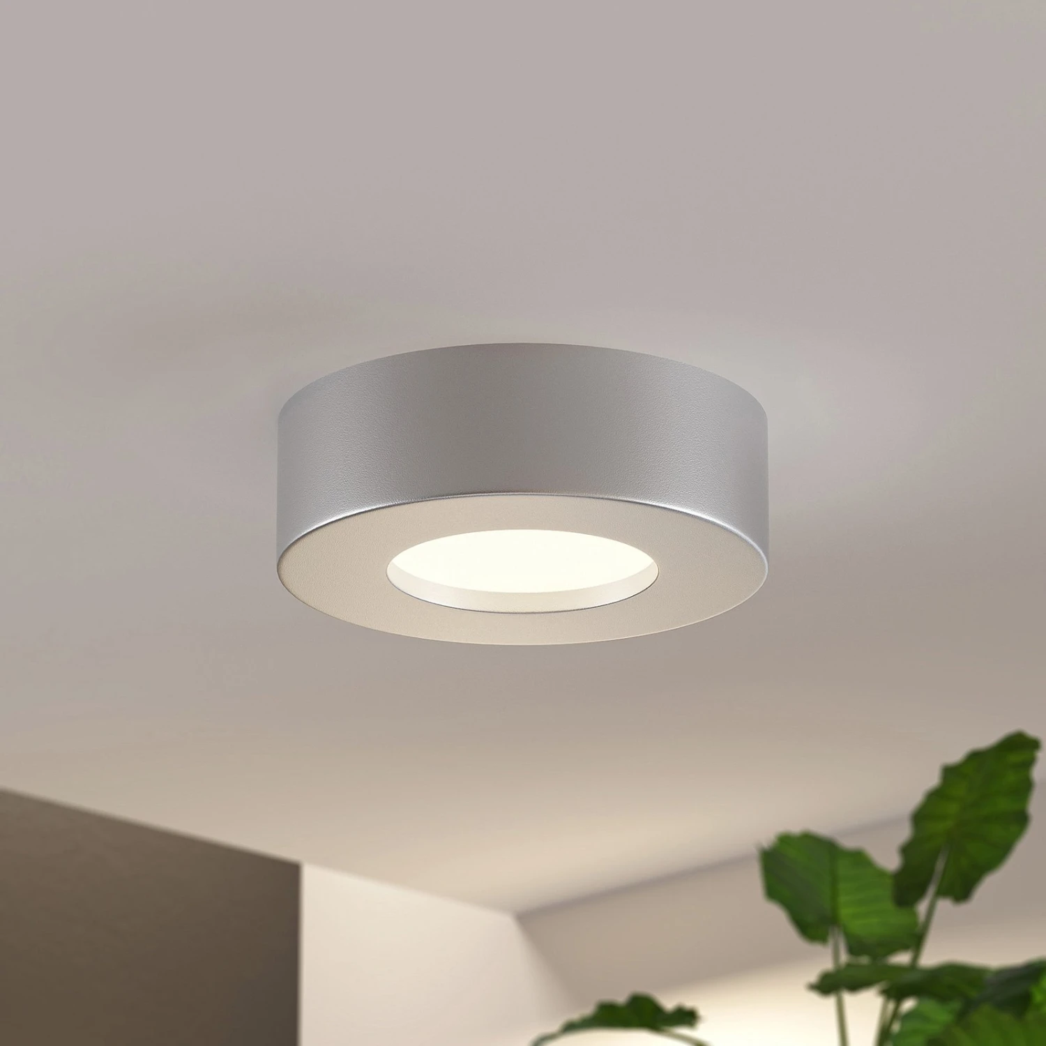 Runde LED-Deckenleuchte Edwina mit silberfarbenem Rahmen und Schutzart IP44, Lichtfarbe voreinstellbar – in praktischem 10er-Set