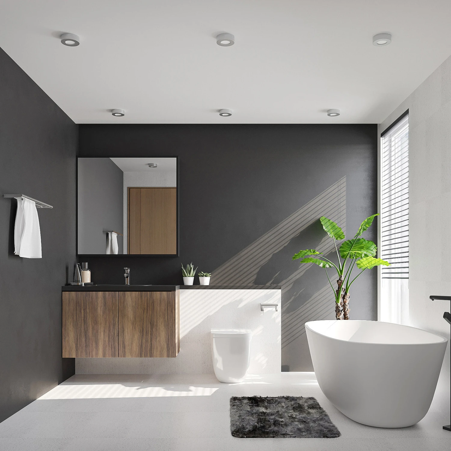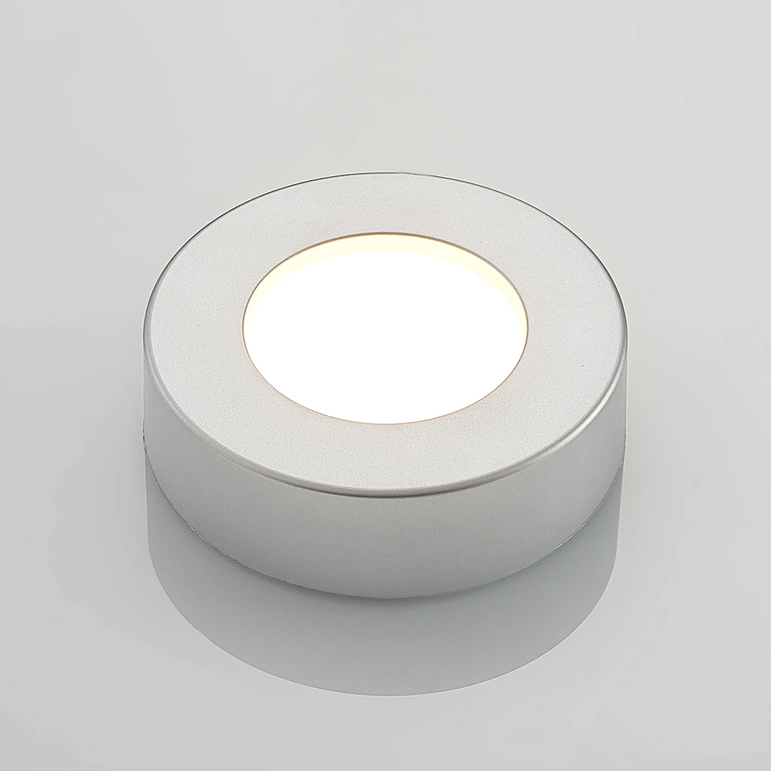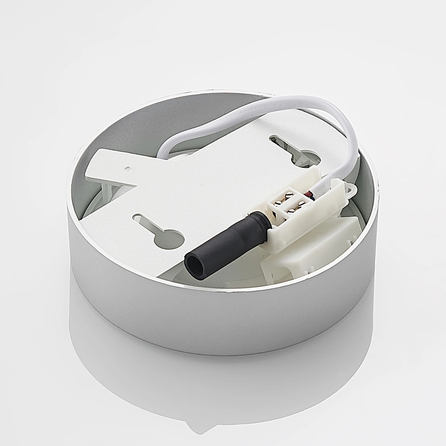 Runde LED-Deckenleuchte Edwina mit silberfarbenem Rahmen und Schutzart IP44, Lichtfarbe voreinstellbar – in praktischem 10er-Set