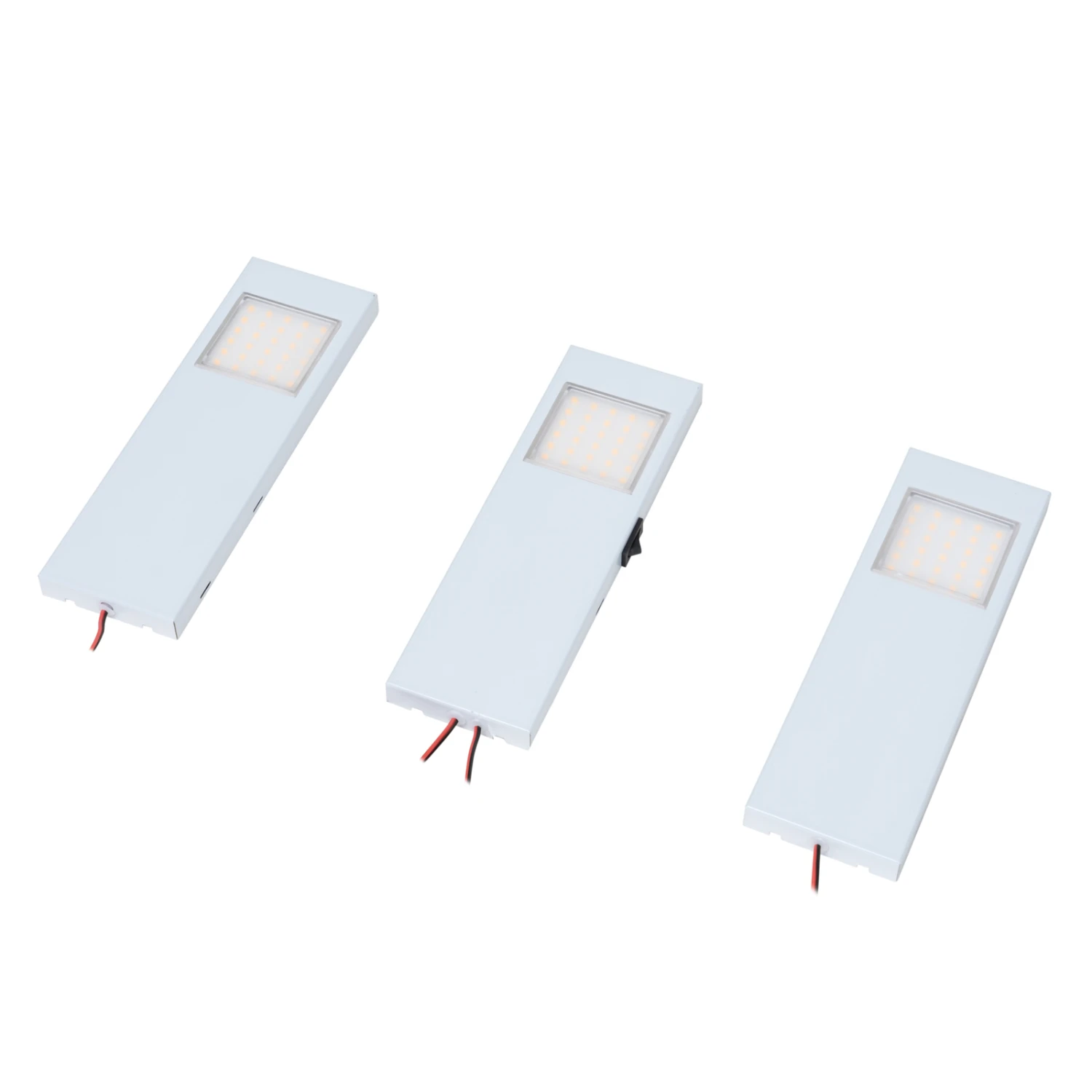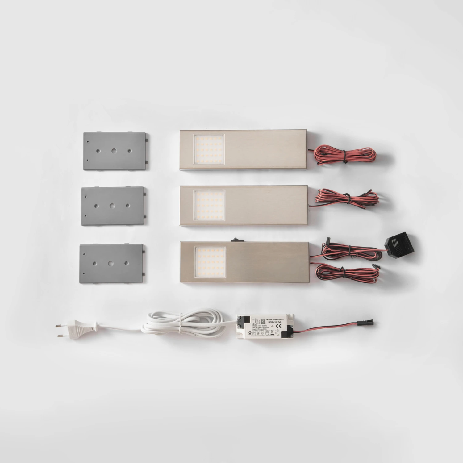 Schönes Dreier-Set aus eckigen Edelstahl-Unterbauleuchten mit LEDs: die Unterschrankleuchte Lorna