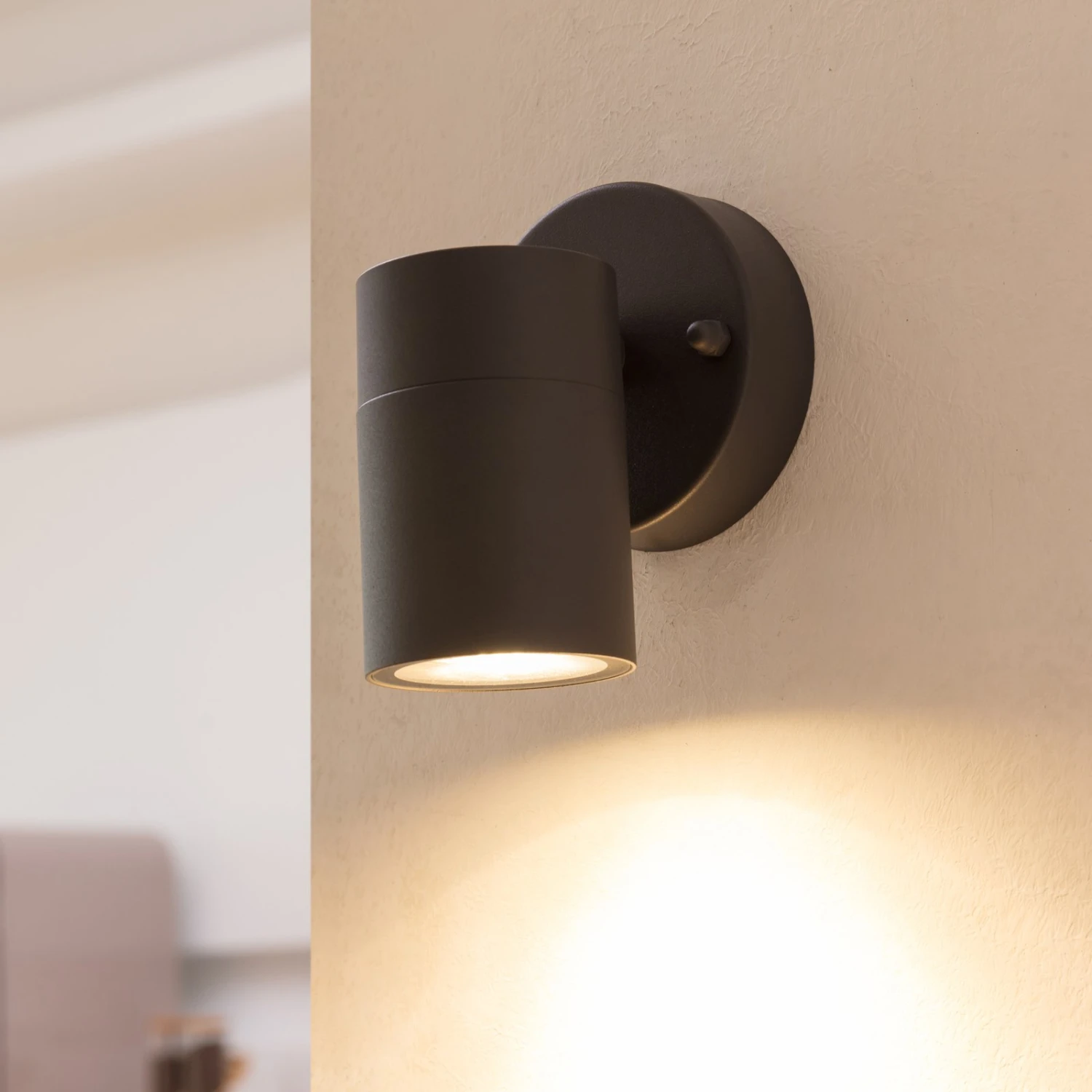 Dunkelgraue Außenwandleuchte Tulimar als modernes Downlight für Eingang und Terrasse