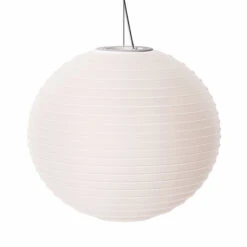 Der mundgeblasene Glasschirm mit seinen feinen, waagrechten Linien lässt an eine fernöstliche Laterne aus Papier erinnern. Mit filigranen Seilen ist der Schirm mit dem Deckenbaldachin verbunden. Mit einem selbstgewählten, dimmbaren Leuchtmittel, hier kann gerne auf eine energiesparende LED-Lichtquelle zurückgegriffen werden, erstrahlt das Muster der Leuchte mit indirektem, blendfreien Licht und verbreitet eine gemütliche Stimmung.