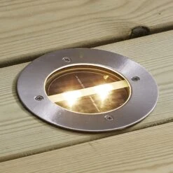 Die runde und aus Edelstahl gefertigte LED-Einbauleuchte Decklight lässt sich überall im Außenbereich in den Boden einbauen, und das ganz ohne aufwendige Stromvernetzung. Denn dank des integrierten Solarpanels speist die Leuchte am Tage Solarstrom in den integrierten Akku ein, um damit bei Einbruch der Dunkelheit die verbauten LEDs für bis zu 6 Stunden zum Leuchten zu bringen. Einzeln oder zu mehreren montiert, lässt sich mit der Einbauleuchte die Terrasse o. Ä. sicher abgrenzen und effektvoll in Szene setzen. Dank des Edelstahlgehäuses fügt sich die Leuchte optisch dezent und unaufdringlich der restlichen Außengestaltung an.