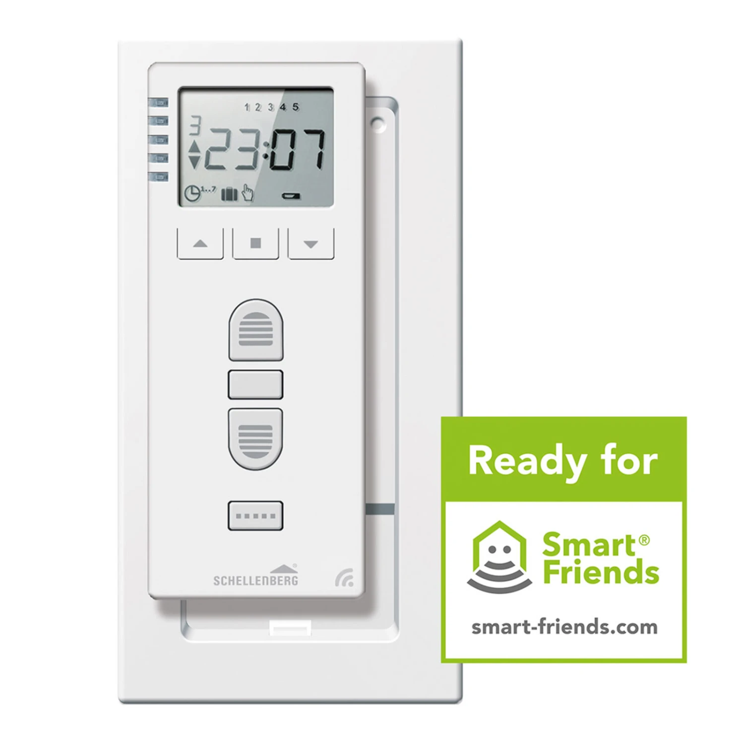 Ein großes Plus der Schellenberg Zeitschaltuhr Premium ist, dass sie Smart-Home-fähig ist und somit jederzeit in ein bestehendes Smart-Friends-System eingebunden und hier als zusätzliches Bedienelement verwendet werden kann. (zentrales Steuerungselement nötig, siehe Zubehör)