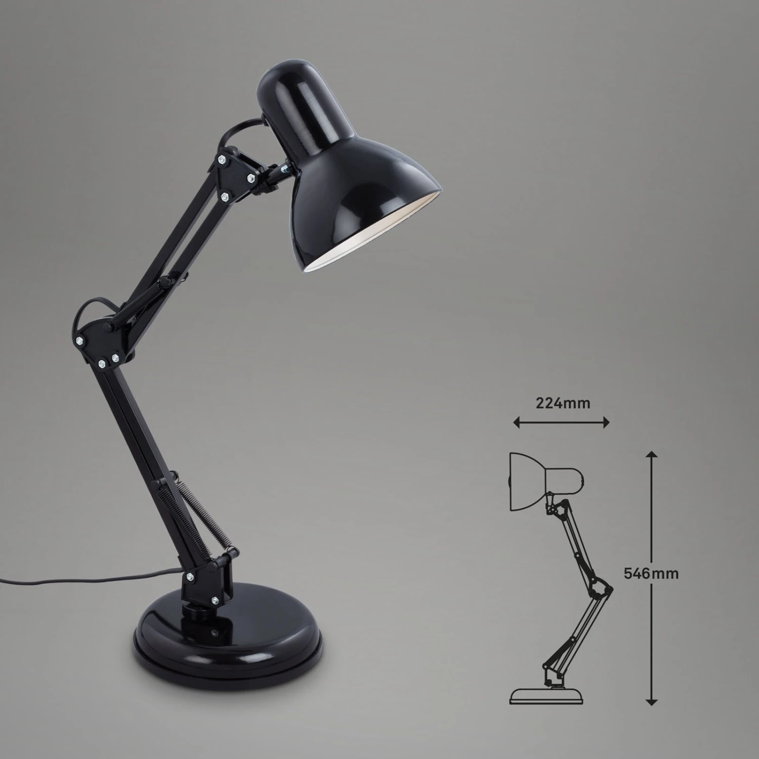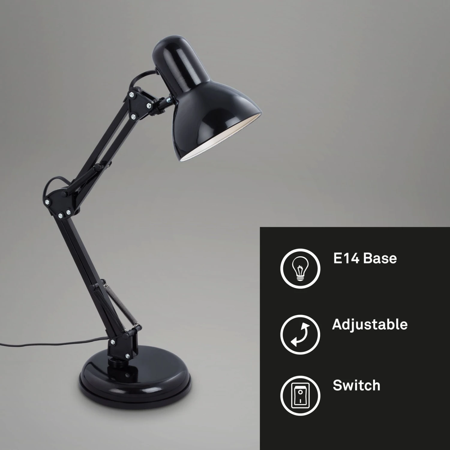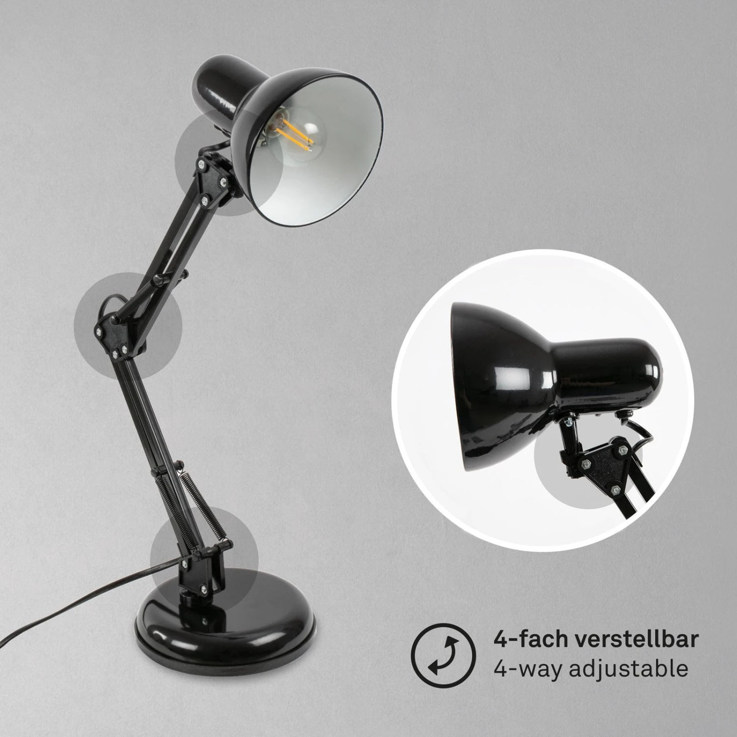 Justierbare Schreibtischleuchte Pixa im schwarzen Retro-Design