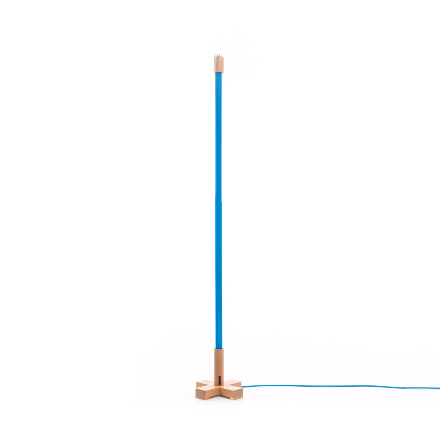 Röhrenförmige LED-Stehleuchte Linea mit getöntem Glas und Enden aus hellem Holz