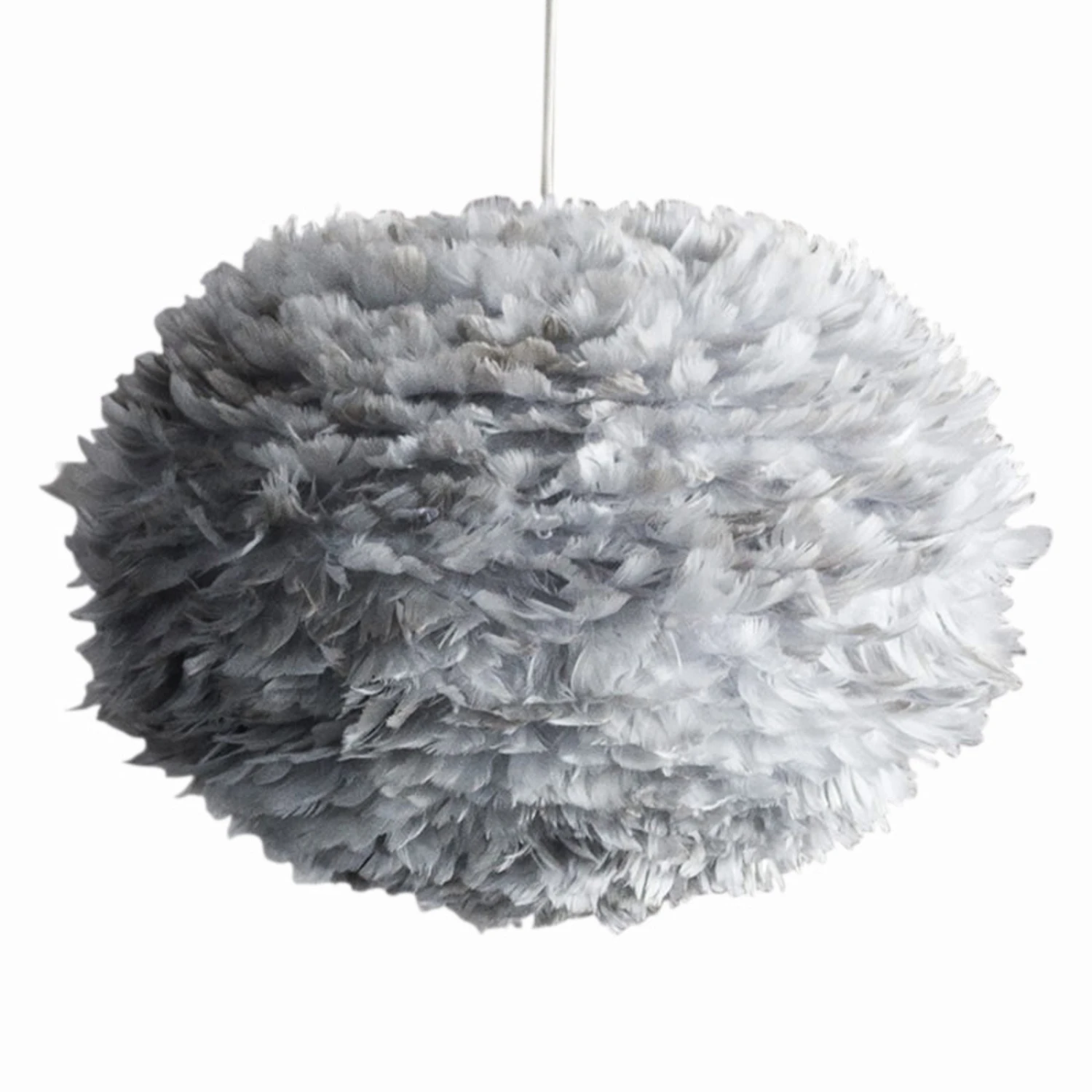 Die Pendellampe Eos large fällt überall sofort in den Blick, was zum einen an ihrer ungewöhnlichen Optik und zum anderen an ihrer fantastischen Lichtwirkung liegt. Beides hat sie ihrem Schirm und dem natürlichen Material, das dafür verwendet wurde, zu verdanken. Der hellgraue Schirm besteht aus ca. 4.500 natürlichen Gänsefedern. So wird Eos large sowohl ausgeschaltet als auch beleuchtet zum echten Highlight.