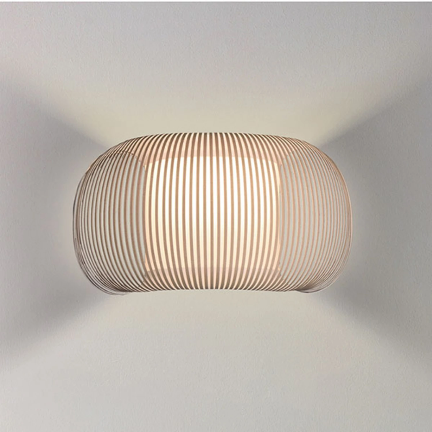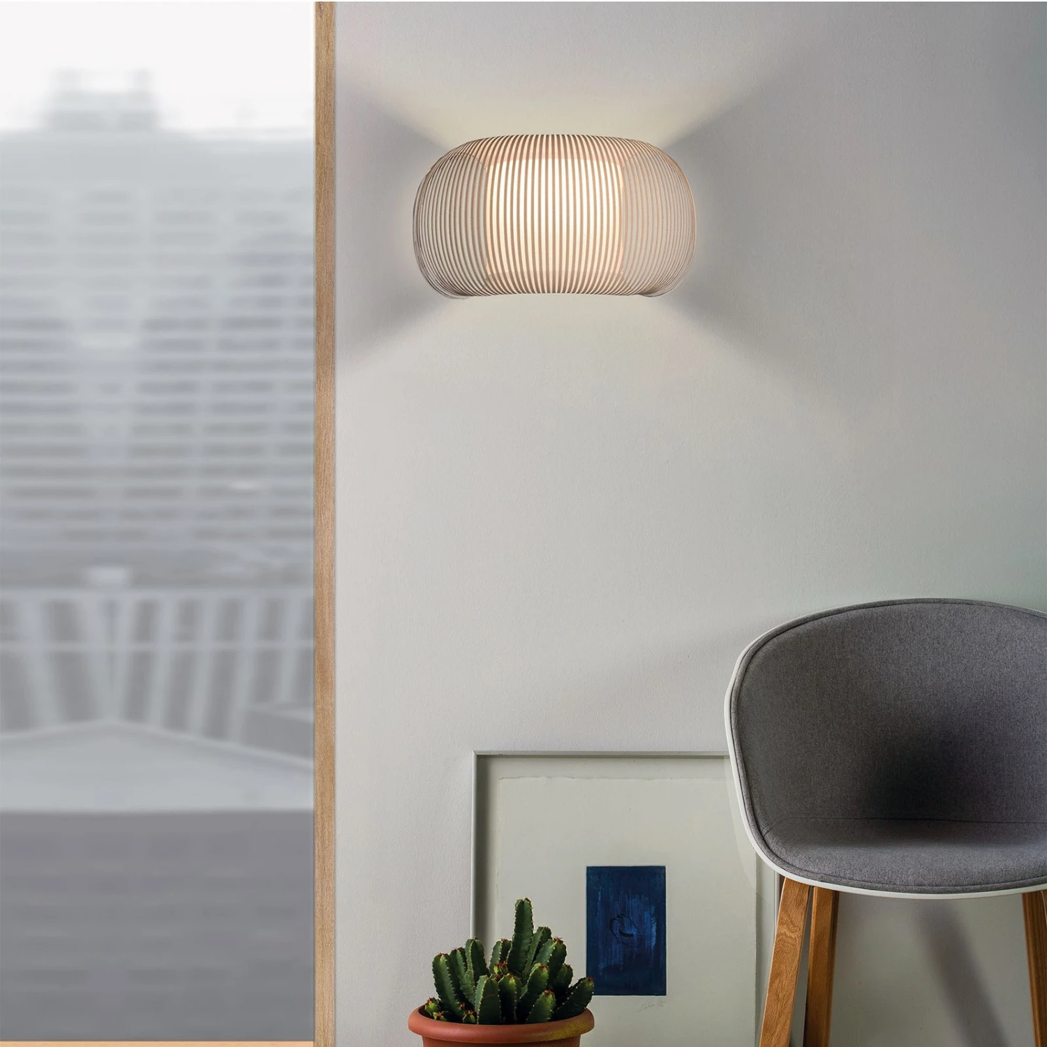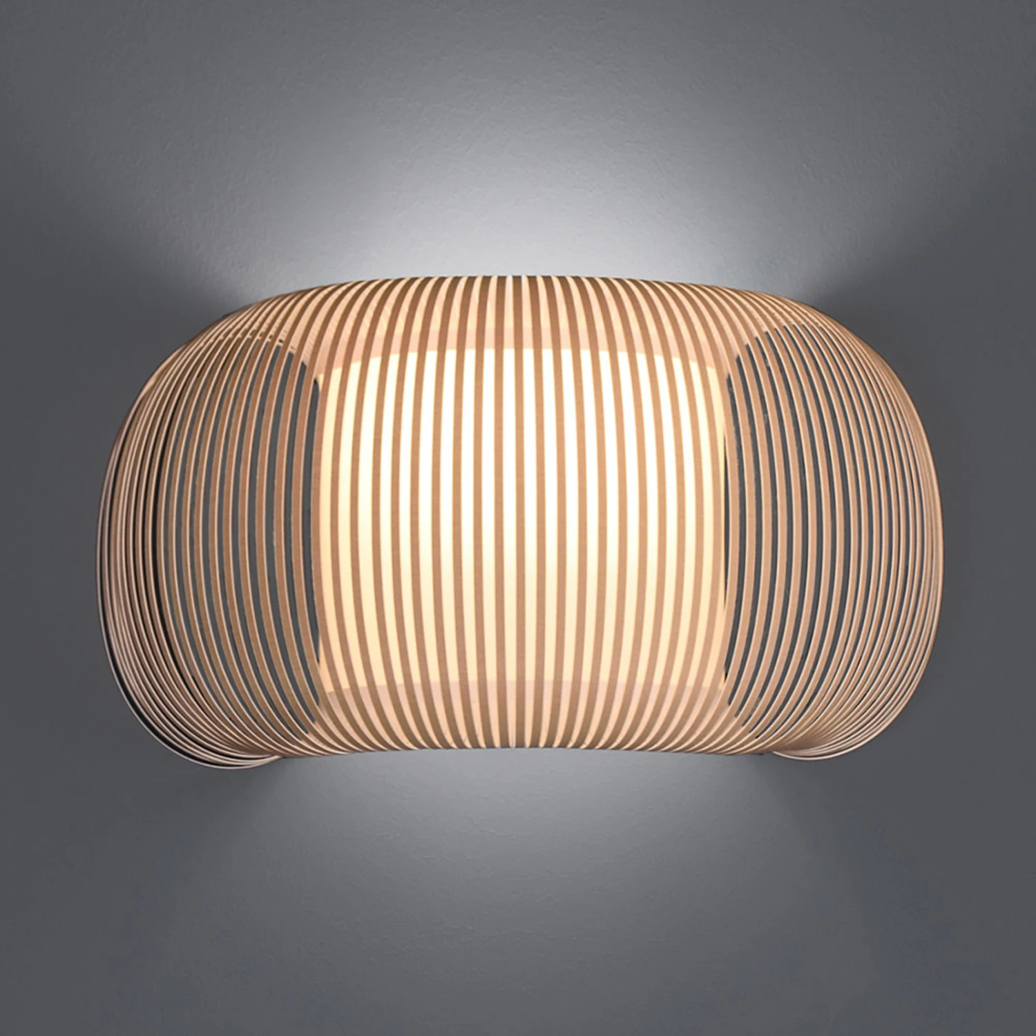 Die Wandleuchte Mirta ist ein absoluter Blickfang in jedem Raum. Ihre spezielle Optik lässt sie hochwertig und natürlich erscheinen. Der weiße Acryl-Diffusor im Inneren ist umgeben von einer Vielzahl an feinen Kunststoff-Streben, die mit Stoff ummantelt sind und sich halbrund um den Diffusor wölben. Sie sind in gleichmäßigen Abständen fächerartig nebeneinander gesetzt und lassen das Licht durch die Zwischenräume in den Raum hinein strömen. Durch den opalen Diffusor ist das Licht blendfrei und gleichmäßig. So wird eine aufregende Lichtstimmung erzeugt mit ansprechenden Licht- und Schatteneffekten, die sich im Raum abzeichnen. Mirta sorgt für eine gute Allgemeinbeleuchtung und kann in einer Vielzahl an Räumen und Einrichtungsstilen zum Einsatz kommen.